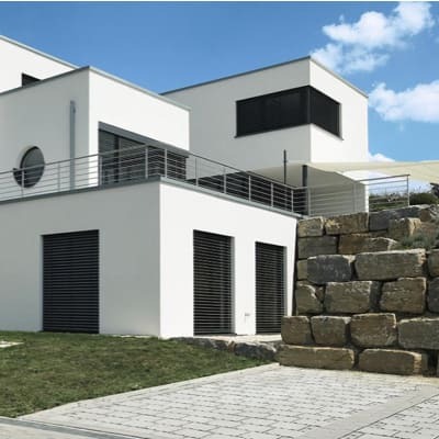 Schaumann Rollläden: Sonnen-, Wetter-, Einbruch­schutz und Wärme­dämmung. Vorbau- und Aufsatz­varianten, motorisch steuerbar.